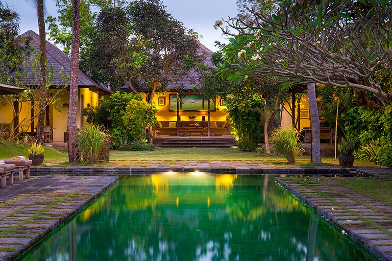 This villa lulls you into total relaxation, and you can walk to the blue waters of seseh beach or hop on a bike to navigate the quiet country roads in minutes.